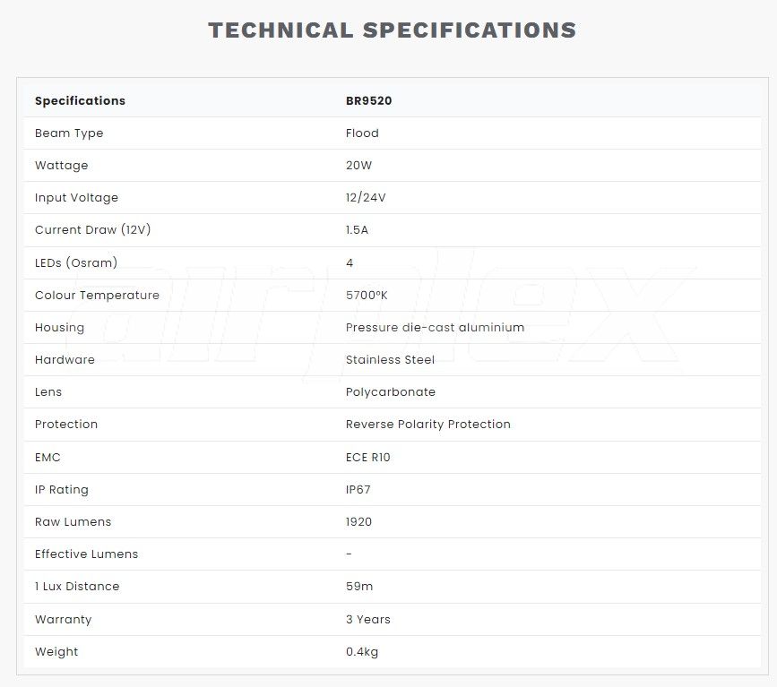 -High output Osram LED’s are precisely aligned within the unique optic drive reflectors to reduce glare and maximise performance.