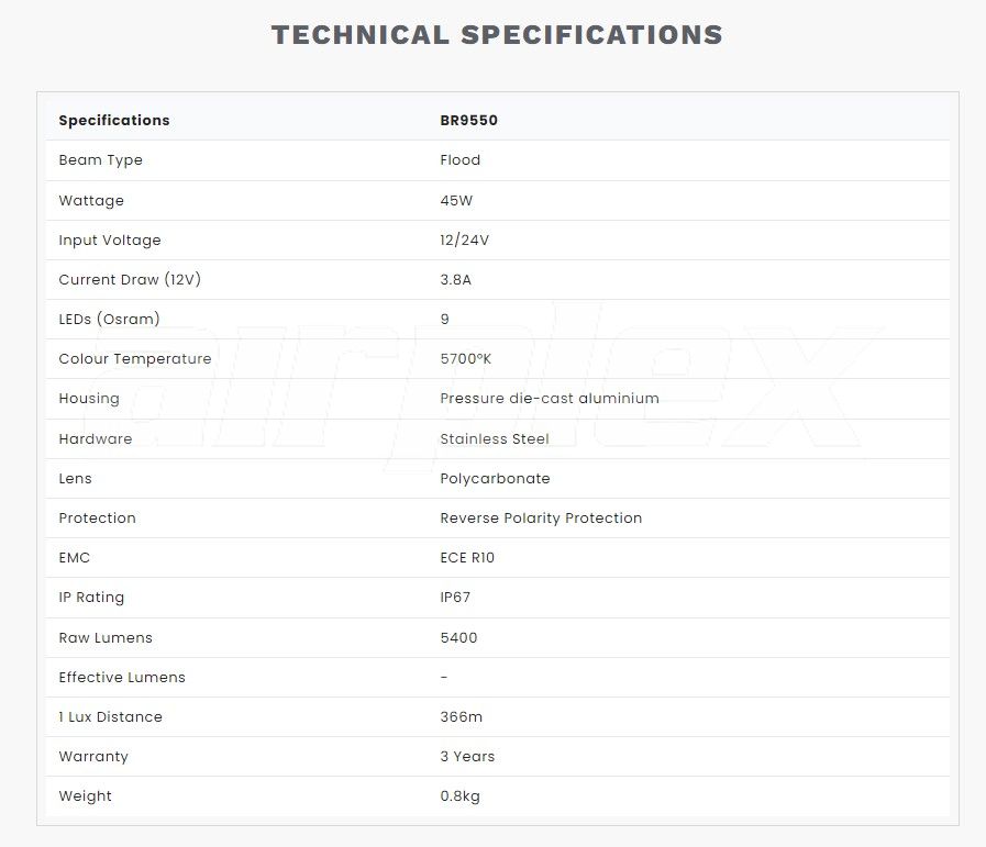 45W’s of high output Osram LED’s are precisely aligned within the spot beam reflector providing driving light performance in a compact package.