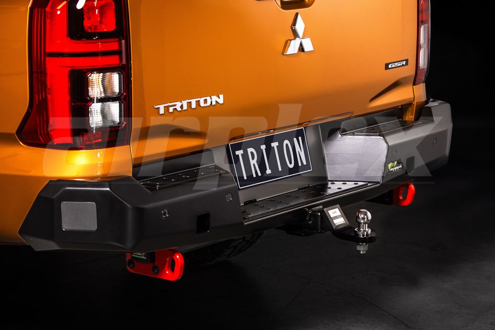 Enjoy 180-degree rear protection a solid step integrated recovery points and a 3500kg tow rating with our tow bar for the Mitsubishi Triton MV.