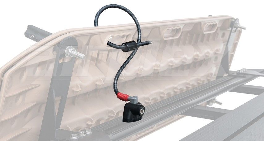 Secure your gear with this steel core strap and lock. So whether it's your ladder at work a kayak awning or gas bottle you can be sure it is locked down when you're not around.