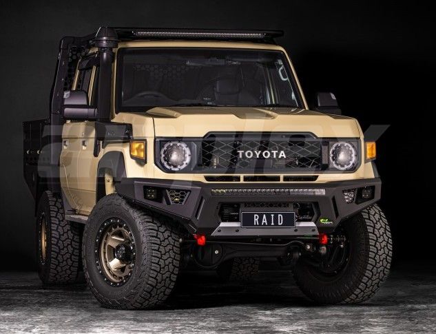 The new Raid Bull Bar has a sleek low-profile style offers robust steel strength with an integrated 4mm steel front skid plate and 2 x 5-tonne recovery points as standard! The list of standard inclusions continues with a chassis-mounted winch cradle provision for a 32" light bar and up to 4 cube lights means this bar is ready for your next off-road adventure.