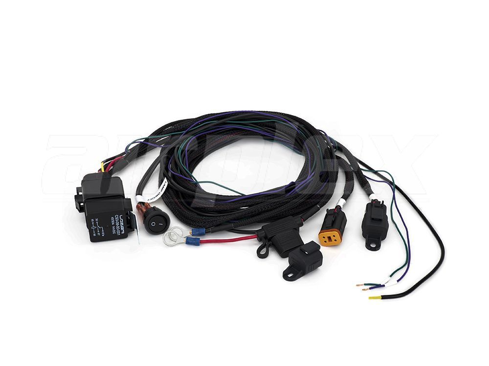 The ideal solution for wiring a pair of Lazer Carbon-6 (Gen3) / RP Hyperspot High Performance LED Driving Lights. The setup is quick, easy, and reliable with Deutsch DT06-4S connectors and no configuration procedures. The kit features a 12V relay, fuse, and battery terminal at one end, and 2.35m of flex on the lamp cable(s). The wiring kit allows for the operation of two lamps via an on/off switch which can be mounted inside your vehicle’s cockpit.
