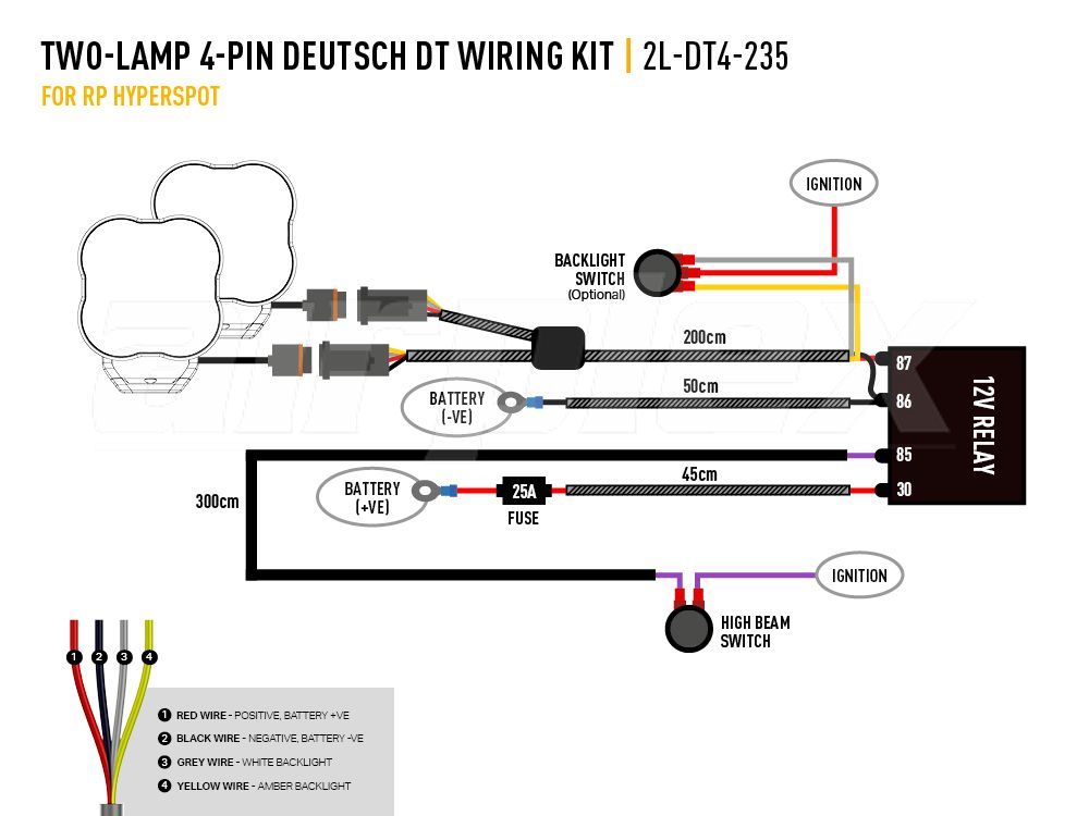 LAZER LIGHTS Two-Lamp 4-Pin Deutsch DT Wiring Kit (12V)
