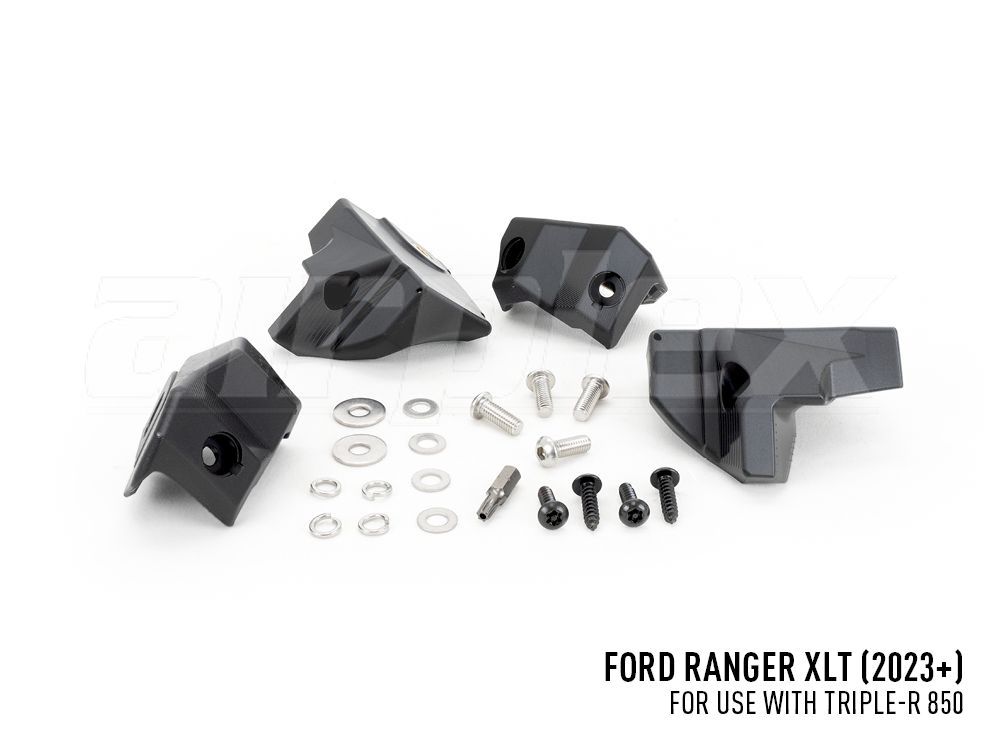 The Ford Ranger XLT kit, designed for model year 2023 vehicles, includes a pair of Triple-R 850 High Performance LED driving lights, plus wiring kit, alongside 4x brackets precision-engineered to engage perfectly with the standard centre grille on the vehicle, with added strength and security provided by the supplied self-tapping (plastic) screws. Made from a high strength composite material, known for its excellent strength and UV stability, the brackets are fully weather and chemical resistant to ensure your installation remains in great condition year after year.