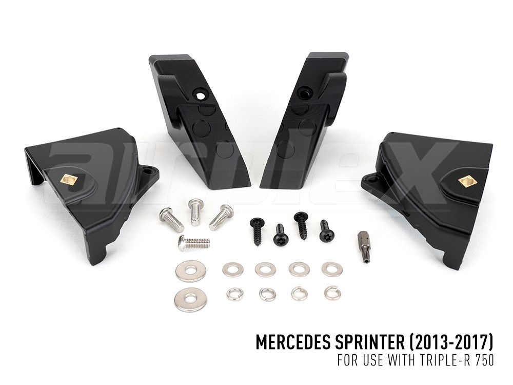 The Mercedes Sprinter kit, designed for 2013-2017 vehicles, includes a pair of Triple-R 750 High Performance LED driving lights, plus wiring kit, alongside 4x brackets precision-engineered to engage perfectly with the standard centre grille on the vehicle. Made from composite material, known for its excellent strength and UV stability, the brackets are fully weather and chemical resistant to ensure your installation remains in great condition year after year.