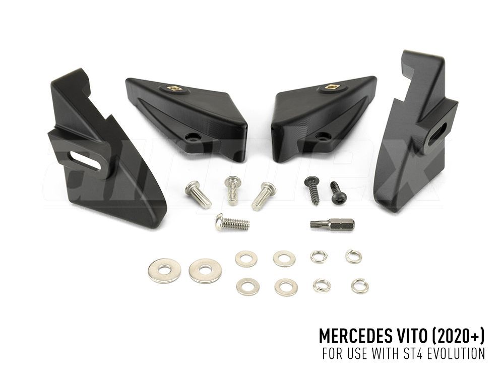 The Mercedes Vito kit, for model year 2020-2023 vehicles, includes a pair of ST4 Evolution lights, plus wiring kit, alongside 4x brackets precision-engineered to engage perfectly with the standard centre grille on the vehicle, with added strength and security provided by the supplied anti-theft self-tapping (plastic) screws. Made from a composite material, known for its excellent strength and UV stability, the brackets are fully weather and chemical resistant to ensure your installation remains in great condition year after year.