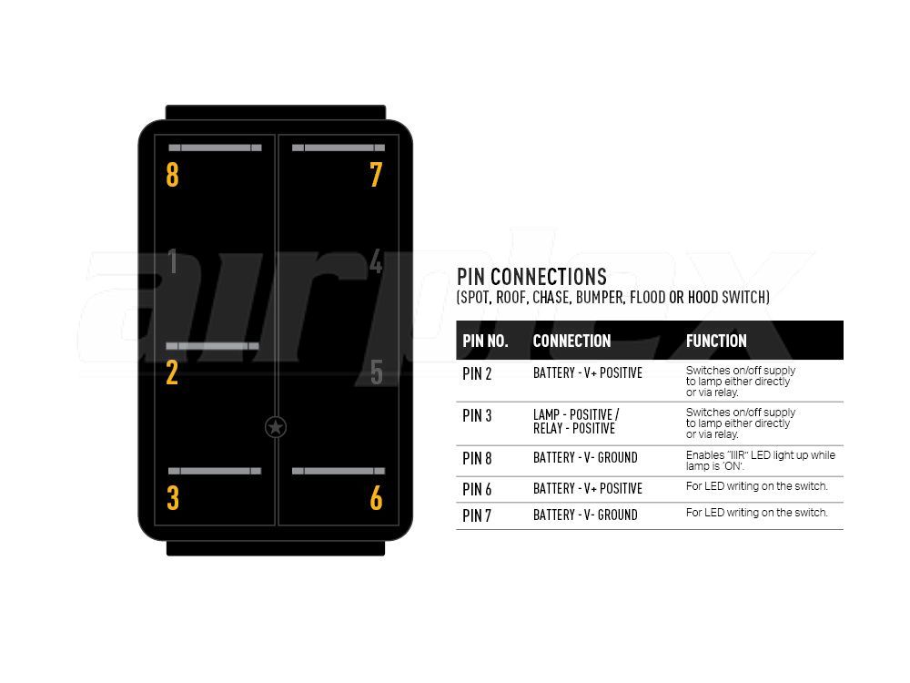 Complete your auxiliary LED light install with one of our range of panel mount rocker switches, for 12V applications only. Each switch is able to be illuminated and features IIIR branding (to represent Road, Rally, and Race), and text specific to your light and install location including: Bumper, Chase, Flood, Hood, Roof, and Spot. Each switch is compatible with our standard wiring harness kits, but any additional connecting wires will need to be purchased separately.